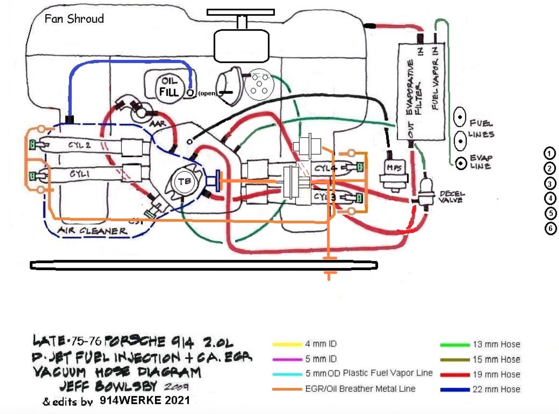 Someday I hope to take a long road trip in the 914, who knows how far I will get. I have cousins in Huntington Beach, great uncle worked for Howard Hughes. Tuning the MPS is a bit of a beast. After a couple of years poking at it I think I have determined why it is so hard to get perfect on my 2056. The vacuum profile of the motor is different at cruise. This will also play havoc with your EGR and retard. When it comes time the first thing you will want to do is get a good baseline of what vacuum you are pulling at idle and cruise. My engine pulls so much more than stock that it was activating the retard circuit when it shouldn't have been and same with the advance. Once you start reaching into the throttle it doesn't matter so much but it's the part throttle bits that really get screwy. Don't forget you can use that pump to monitor vacuum in the plenum. Will be interesting to know how much yours is pulling. |