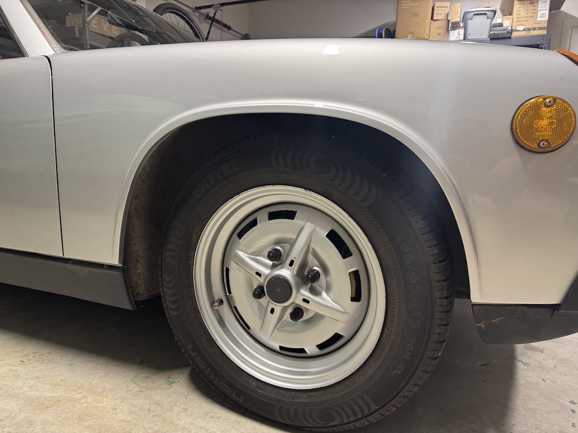 I adjusted mine to look like most of the other 914s I see, so I can't give you exact dimensions of what you should be aiming for. Your rear ride height is similar to mine, but my front looks lower. I like for the front to be a little lower than the back, but not so much that it stands out. What I can offer is that you need to ensure that you're car is on level ground to get it right. Any adjustment you make on one corner can (and likely will) impact all other corners. If you're not on level ground to start with, you'll be making adjustments in the dark. |