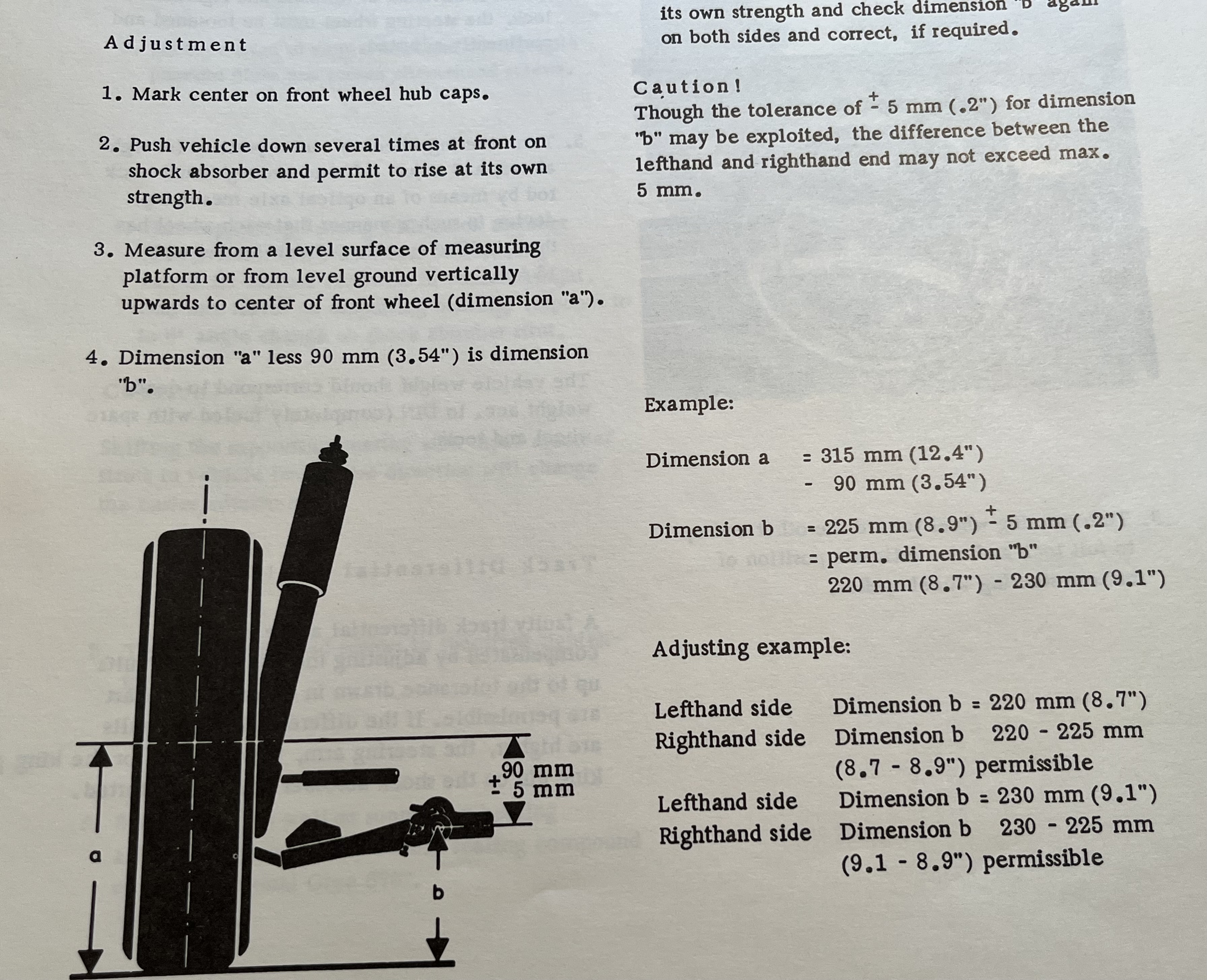 Details: * '75 914 with 1.8 * Springs/Shocks replaced on 6/23/00 at 45,881 miles (~68k miles now) * Springs changed to 100# * Bilstein Shocks (F4-B46-0179-H0 == 24-001793) * Shock is set to the top most groove (6 grooves total) As of right now, I've adjusted to get fender heights match side to side when comparing the front or the rears. I should also mention the rear fenders are about 1.5" from the top of the wheel rim. Taking a measurement from the "donuts" on the underside the front sits 1 inch higher than the rear. (Front == 6.75" and Rear == 5.75"). I still have some adjustment left in the front to lower, but not sure how low the car should be lowered. My understanding is the rear should be slightly higher. Center of the wheels measure right at 12" and the torsion cap is 7.5" (center to ground). Based on the manual I should technically need to raise the front to get back to within factory specs, but I know the car isn't running factory springs. From what I've gathered, this current setup might have been more for autoxing rather than street driving. All that said I am trying to get some clear answers about factory setup: * What is stock height and where should I get a measurement from? * To raise the rear suspension height, is to adjust the shocks and spring location? I have spare shims for the trailing arm, but if I am following correctly this is only for alignment purposes. * What's a good way to see if rear shocks/springs are wore out? Pushing on the front bumper. I feel like the fronts should be replaced. So my guess is the back is probably due to be replaced after 25 years. Thanks for the help in advance. |