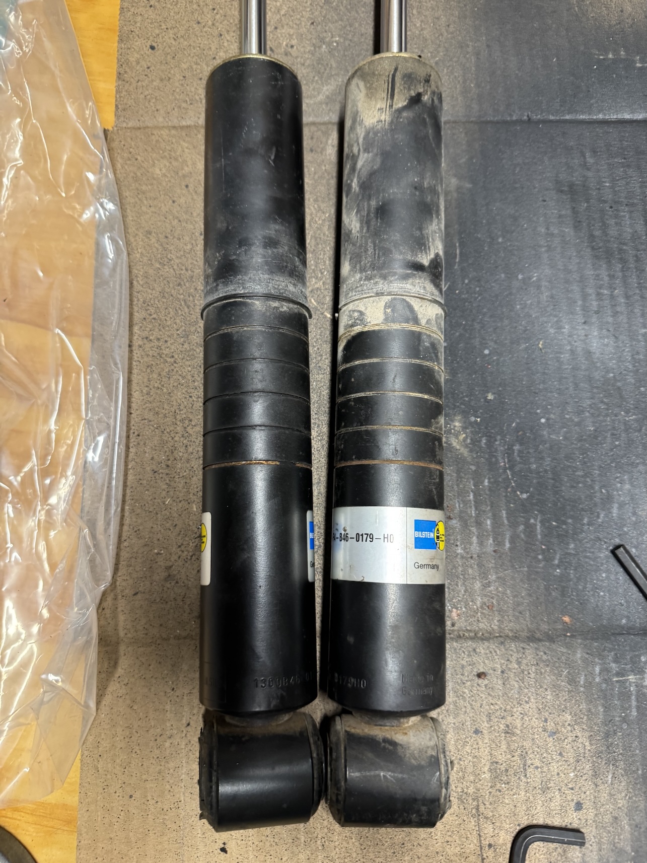 One other question I have is there any markings on the front struts to let me know what inserts I should get for replacements? I took a quick look but didn't see anything. They are black with no markings. Right now I am assuming that since I have the Bilsteins on the rear that those are on the fronts as well. |