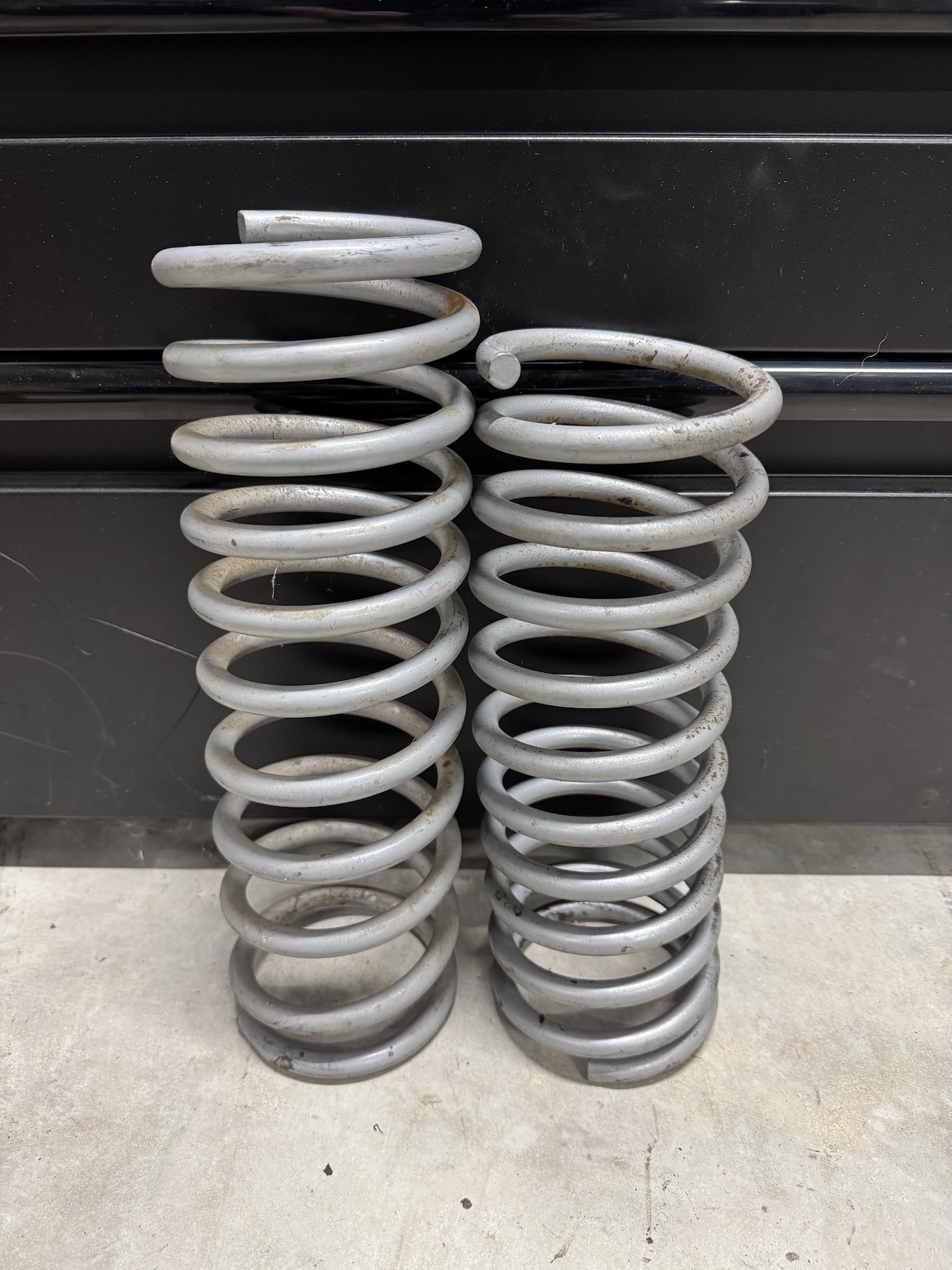 I've swapped out the rear shocks for new Bilsteins (B6) with new springs (100# 914Rubber). Old stuff was shot and springs were actually a different size (pic for reference). I could use some help for those running Bilsteins on their car or what I should aim for to get stock ride height.