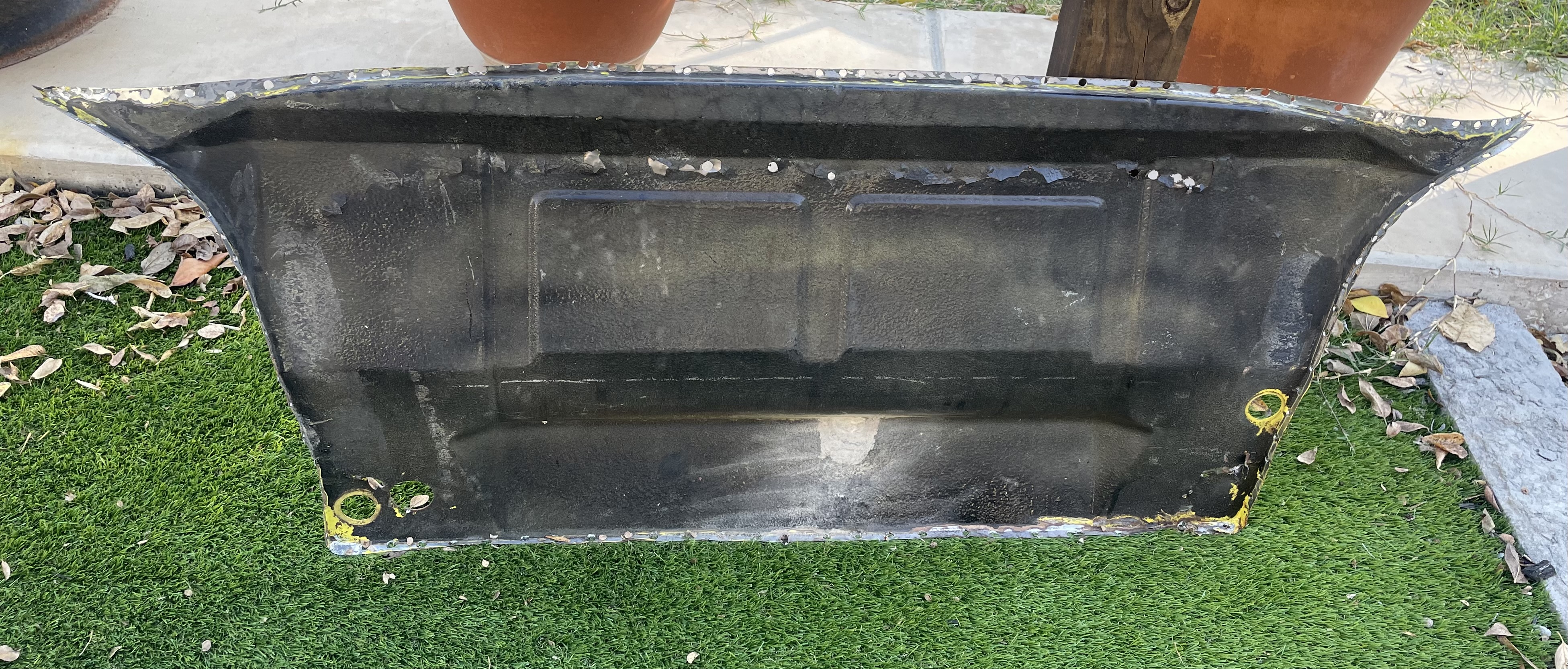 Front Firewall I removed from my parts car (drilled out spot welds on all sides).. not perfect but in pretty good condition over all. Has a coating that is more than paint, maybe a bedliner product(?). There are a few small holes from removal, but no damage from accidents. Asking $100 plus actual shipping ( Pp friends and family).