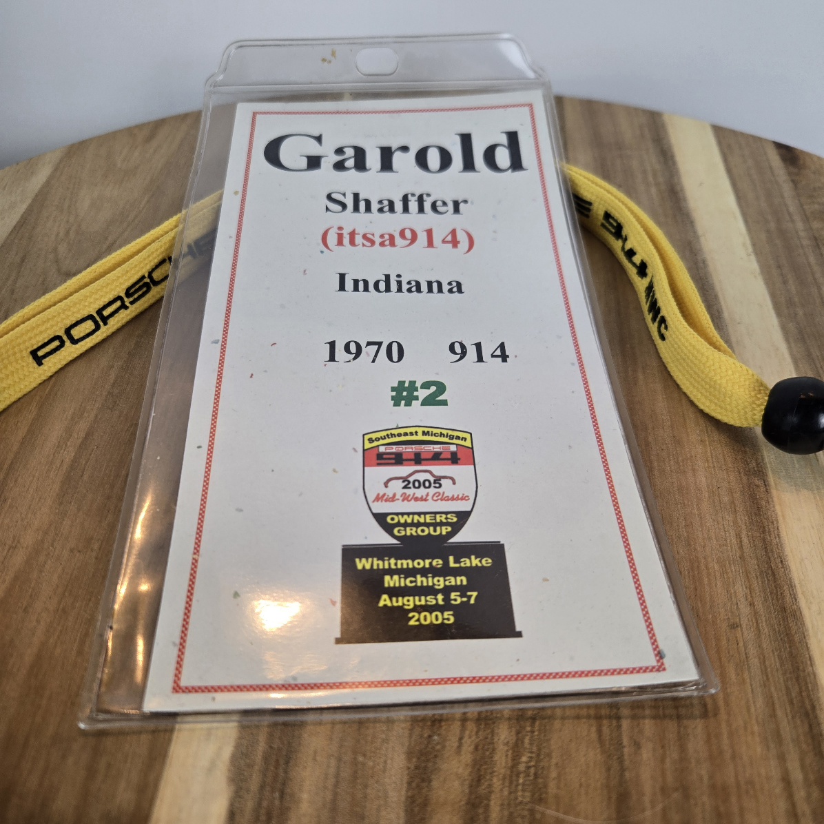 Back story, back in the day there was a group of 914 enthusiasts from Southeast Michigan aka SMOG (Southeast Michigan Owners Group) and they put on a some really nice 914 events, Midwest Classic. I was entry #2 for the 2005 Classic. Everyone that attended received this lanyard and id badge. I'm keeping my id badge but offering up the lanyard. This has been displayed in my home office since then. $8 includes shipping to a US address. Message me if interested. A couple event pictures..... ![]() ![]() ![]() ![]() |