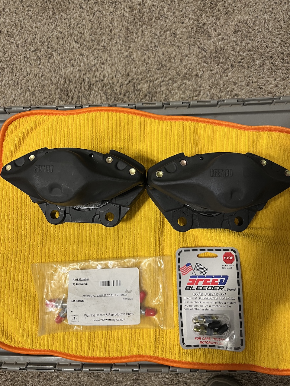 PMB restored with new pistons. No corrosion, clean calipers. Plug and play. 911S stopping power on stock Boge strut. $995 shipped insured.