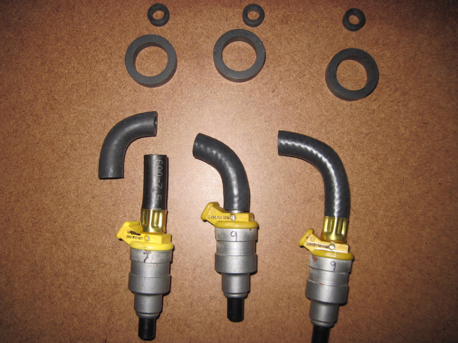 The 1973 2.0 used an 8mm adjusting screw that almost never wore PN 039.109.451. No longer available. The contact area to the valve was much larger than the other 8mm screws. I don't ever remember replacing these screws due to pitting and worn areas that the small contact 8mm screws and especially the 10mm adjusting screws failed with. These rocker assemblies will also help prevent pitting and damage to the valve stems. Changing to the "wobble foot" 911 8mm valve screw requires grinding the rocker arm, respacing the rocker assembly and resetting the geometry to correctly install. These used rocker assemblies fit all 914 and type 4 engines and will require only regular valve adjustments. Lock nuts and hardware included, $100. 3, 1.7 rebuilt Bosch injectors by Fuel Injection Corp, Tracy CA. all 3 have identical flow specs. 2 are 0 280 150 009 catalogued to Porsche 914 and one has P/N 0 280 150 007 catalogued to a 1.7 VW because it used a different hose. A replacement curved hose as well as the seals are included. $150 for the 3. Prices plus shipping and PayPal fees Attached thumbnail(s) |