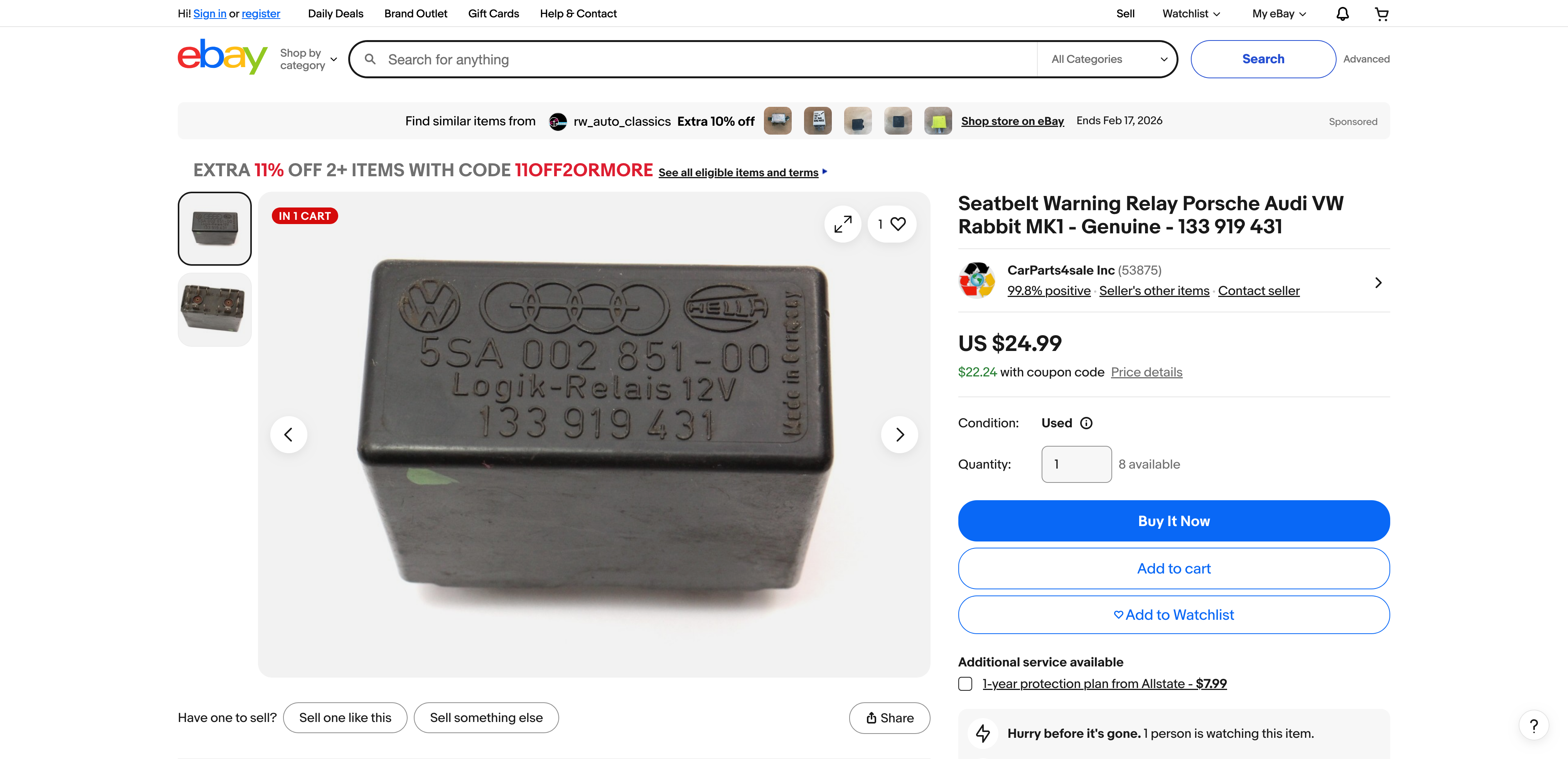 Have been looking hard for a 133-919-431 relay with no luck so far. Bosch#0335412002 or Hella#5SA002851-00 Does anyone know of a source for this?TIA Dennis (IMG:style_emoticons/default/confused24.gif)