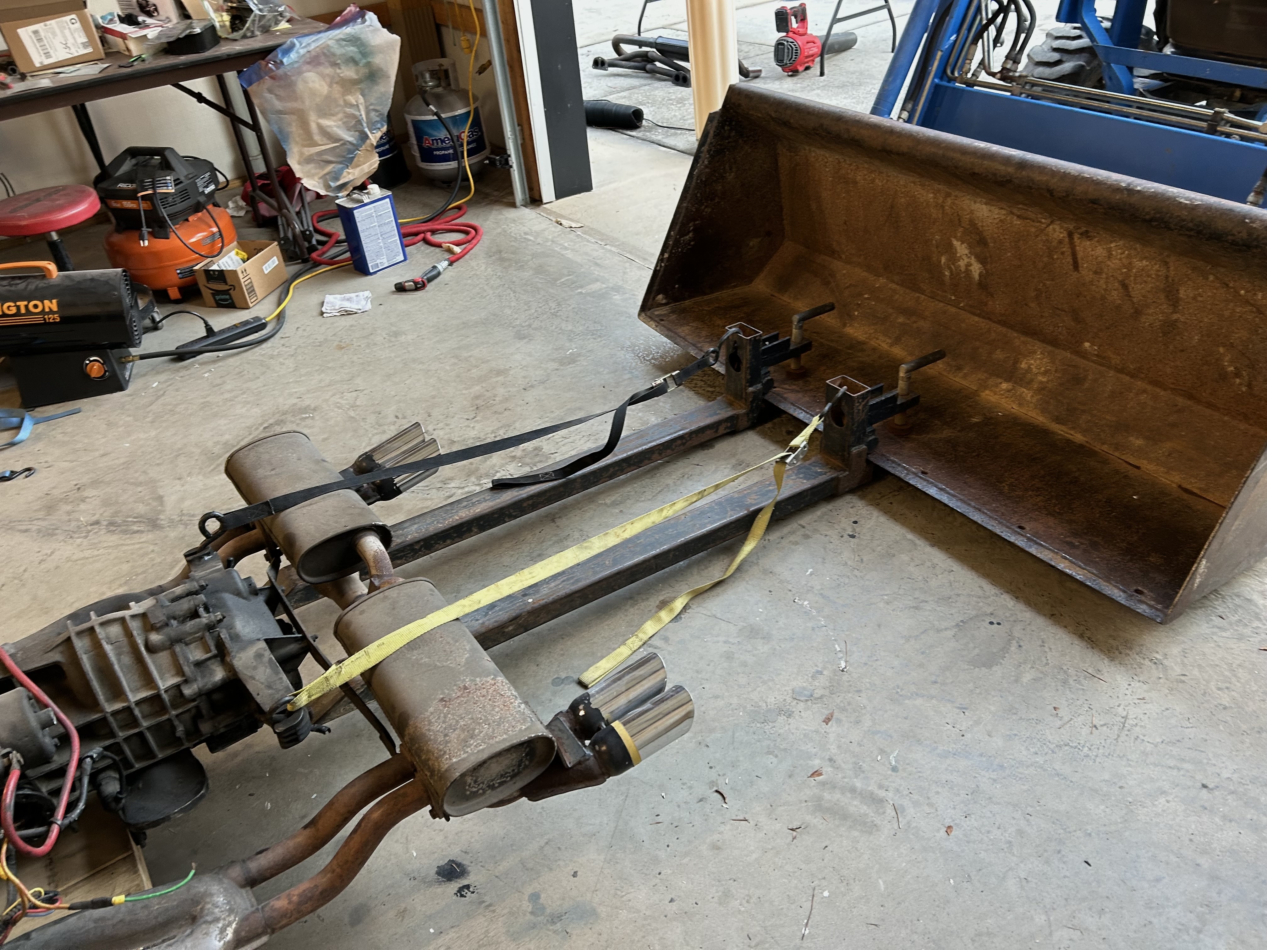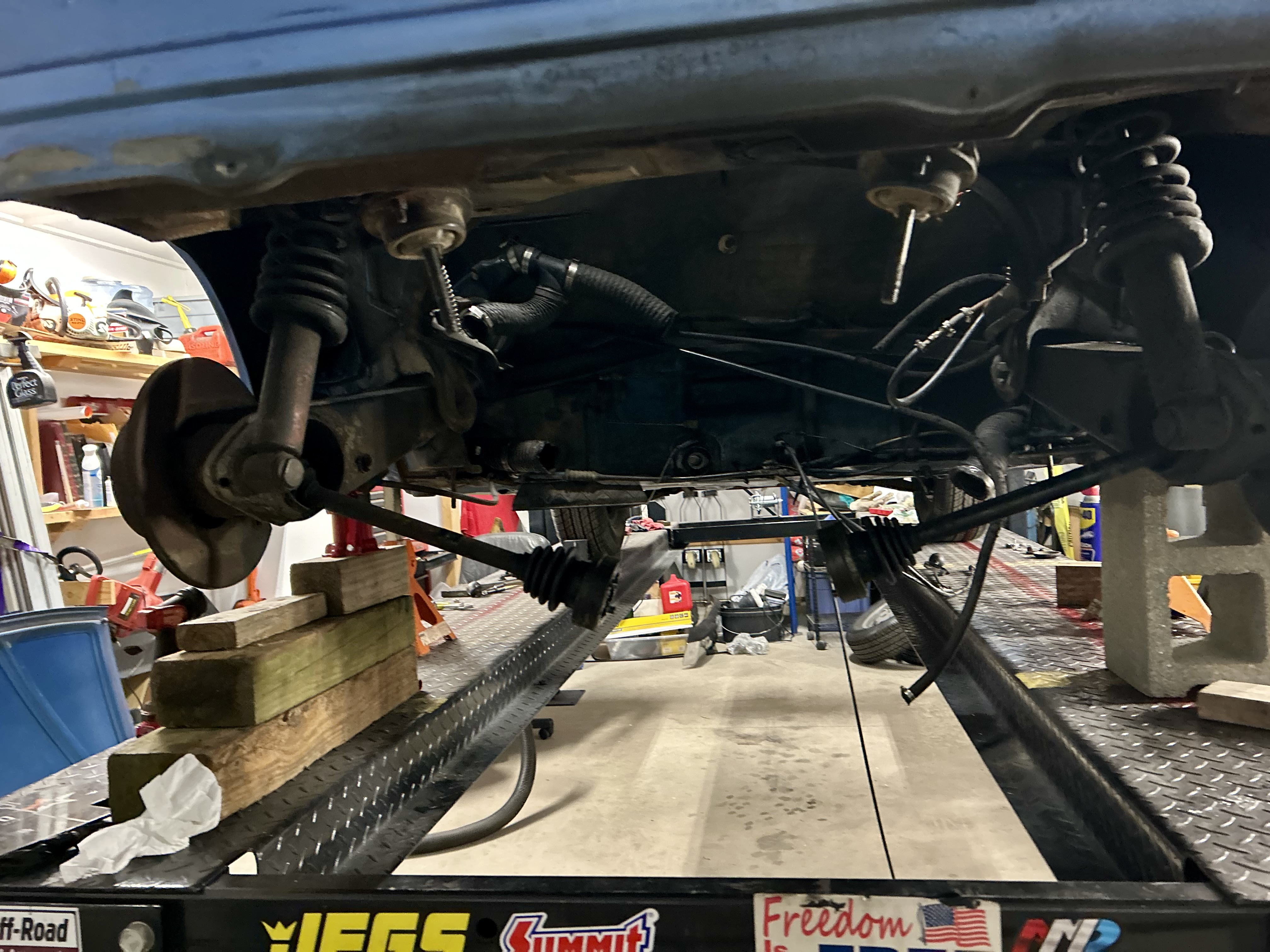 Cinder blocks are …well cinder (IMG:style_emoticons/default/agree.gif) Extremely dangerous ... (IMG:style_emoticons/default/blink.gif) Blocks were a second backup. Metal stands on both sides. |