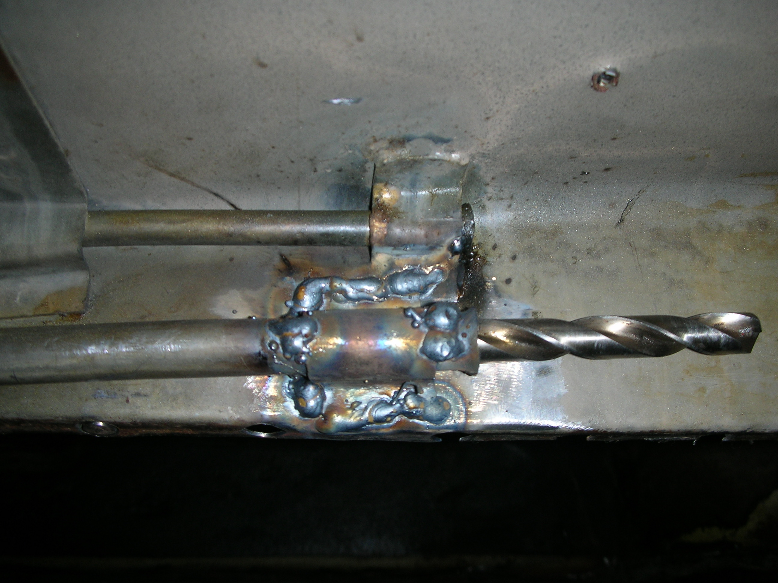 My tube attachment at the front was broken off, so i used a clamp made for electrical cable & bolted it to the tunnel. It aint goin nowhere now.