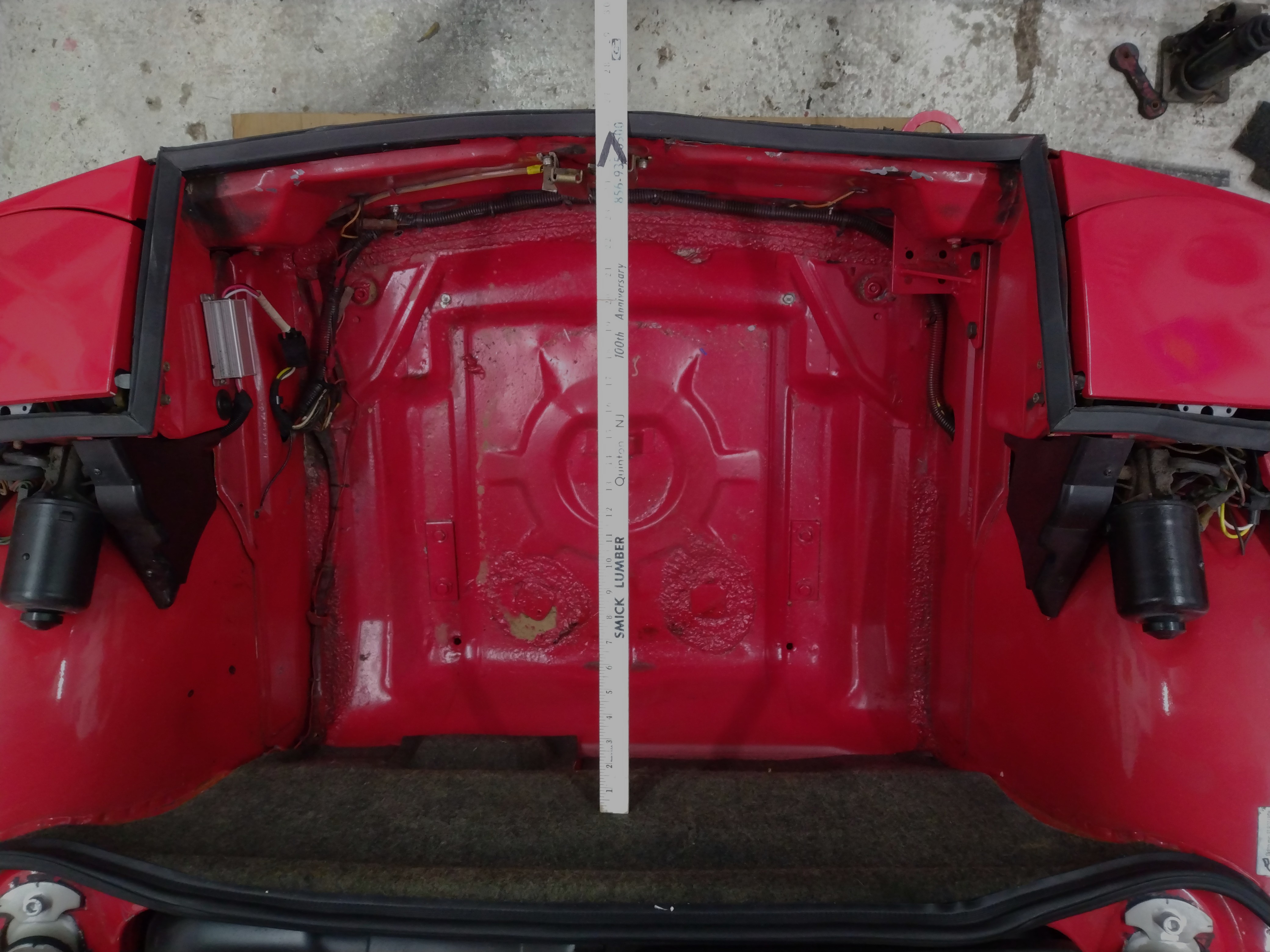 Your looking for D but measure from the trunk side of the cowl weather strip forward. |
