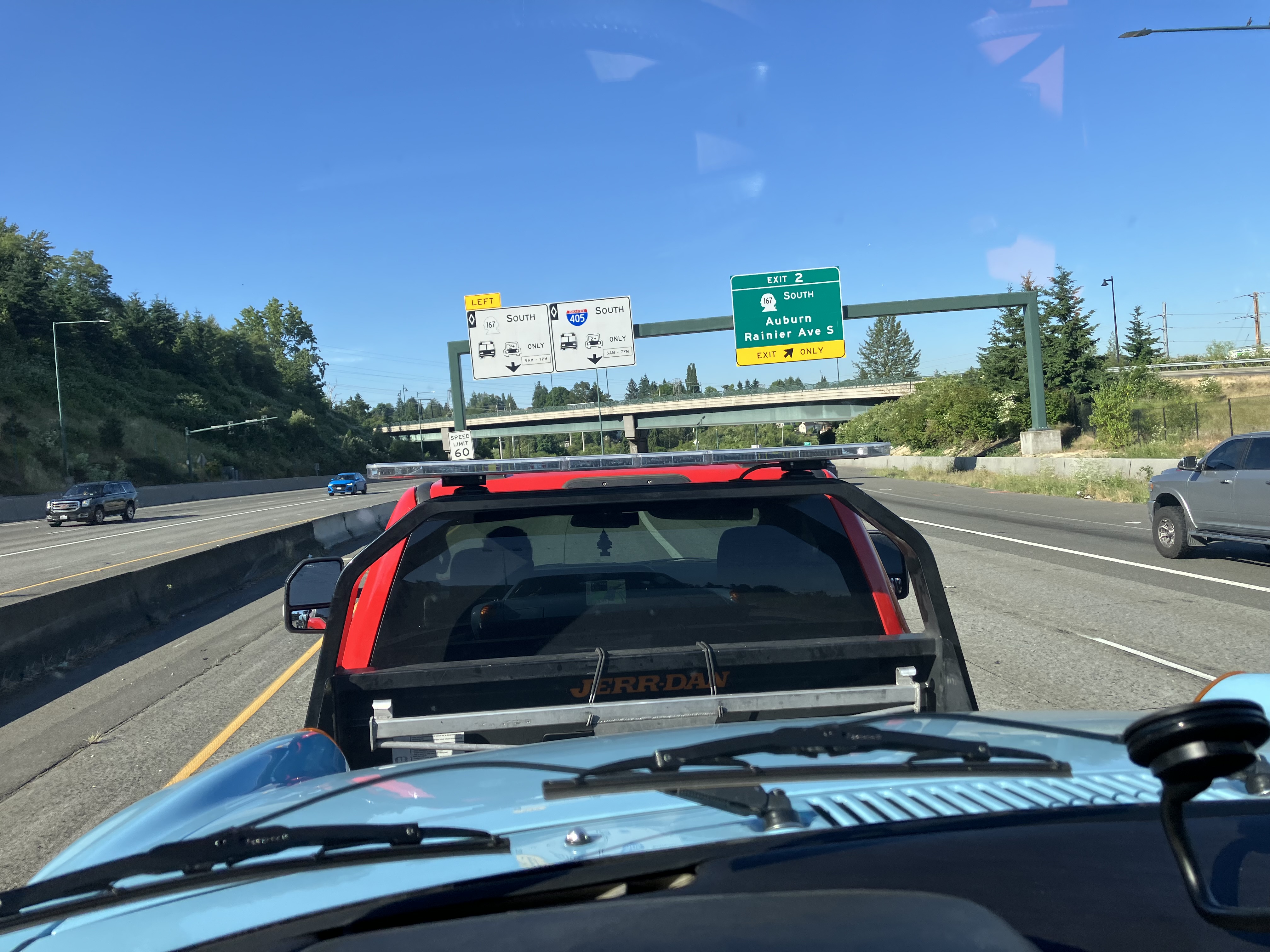 Had to flatbed my 2017 991 (destroyed rear tire). My wife and I rode in the truck cab, first to the tow company HQ and then to the nearest town where we could get a tire.